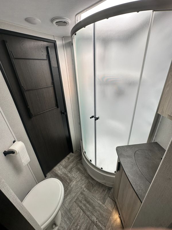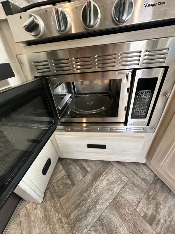 This RV has everything you need to ensure your trip is everything you hoped to be! It is equipped with a powerful 4500kw Onan Generator so you will never be without power, even in the middle of nowhere! It has a large fridge, slide out pantry and plenty of storage for all your favorite food and beverages.